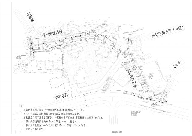 姚家大院危旧房改造项目周边市政道路项目位于四川省达州市通川区西城街道牌楼社区。拟建道路起点接现状牌楼路、终点接朝阳东路。主要建设内容包括道路工程、雨污水工程、电力工程、通信工程、照明工程、交通工程、绿化工程、人防工程及其他附属设施等。朝阳东路北巷为改扩建,长度约151米,红线宽11米;规划道路西段,长度约223米,红线宽9米。